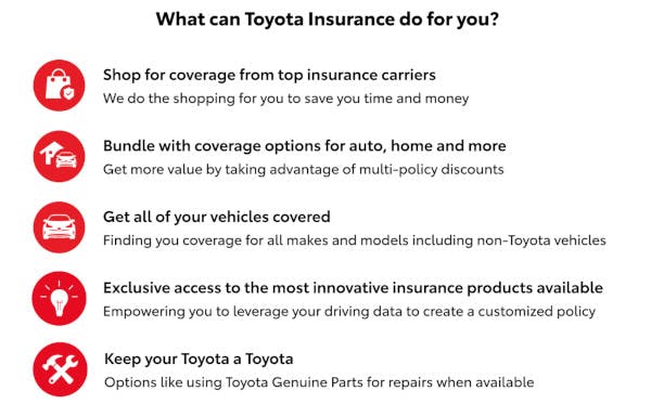 Bringing the value, innovation, and expertise that you would expect from Toyota when it comes to protecting your assets, Toyota Insurance also works with top insurance companies to bring you quality customizable insurance coverage at affordable rates to help you save on auto, home, renters, boat, RV and more!
