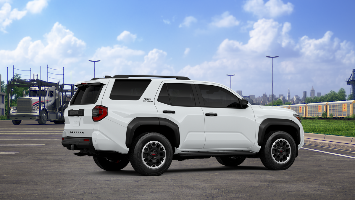 - Black honeycomb-style grille, mirror caps, door handles, and overfenders; color-keyed rear spoiler; black "TRD OFF ROAD" and "4RUNNER" badges
