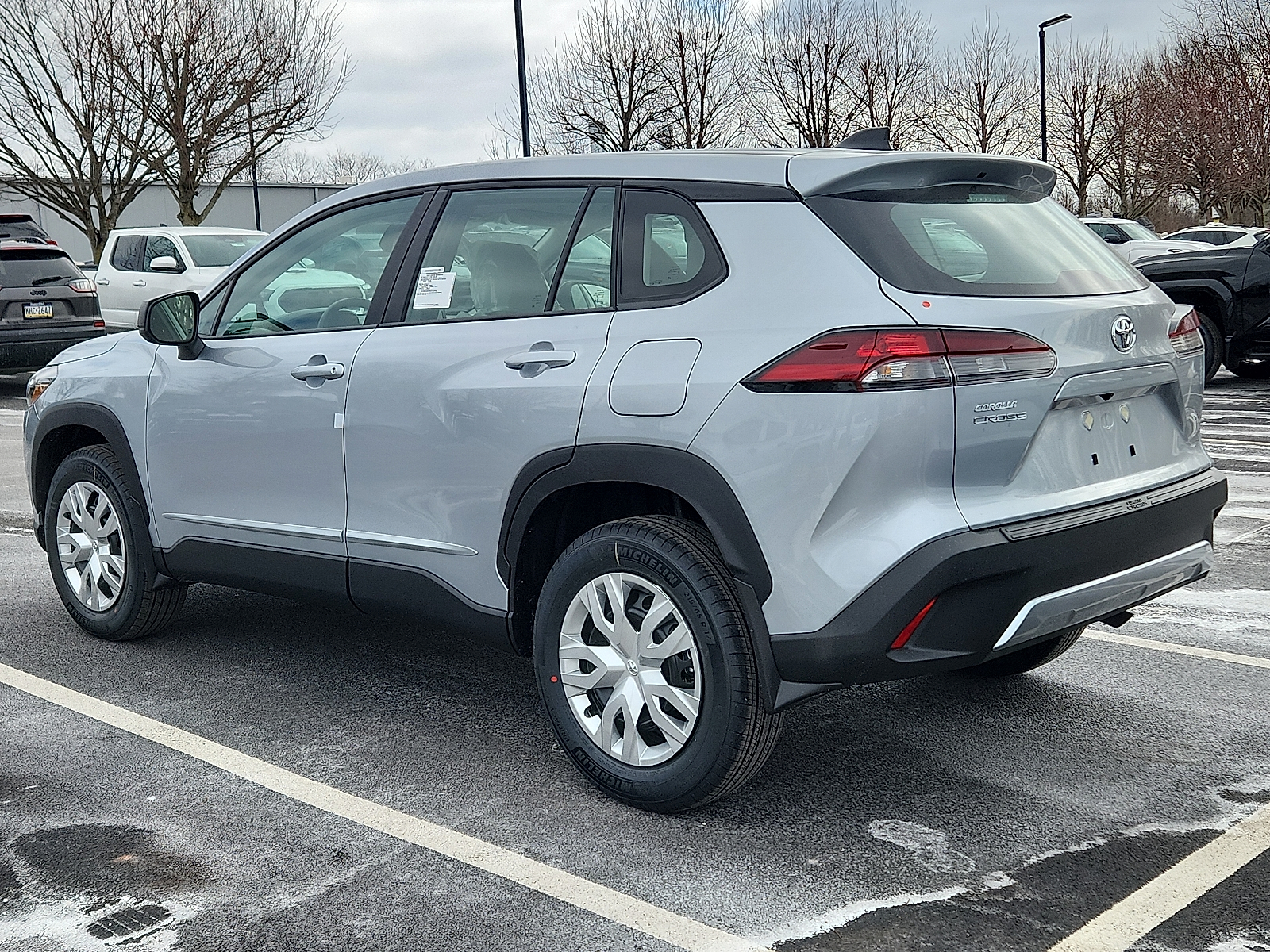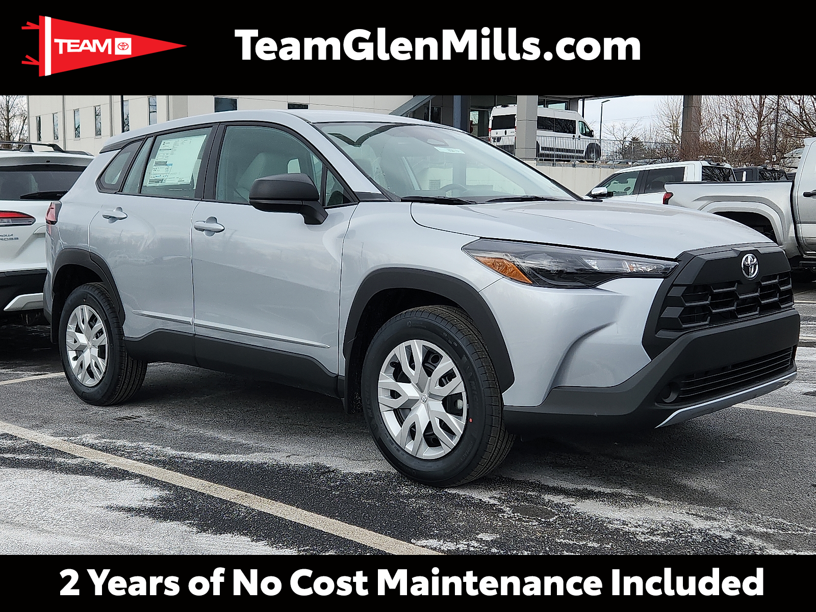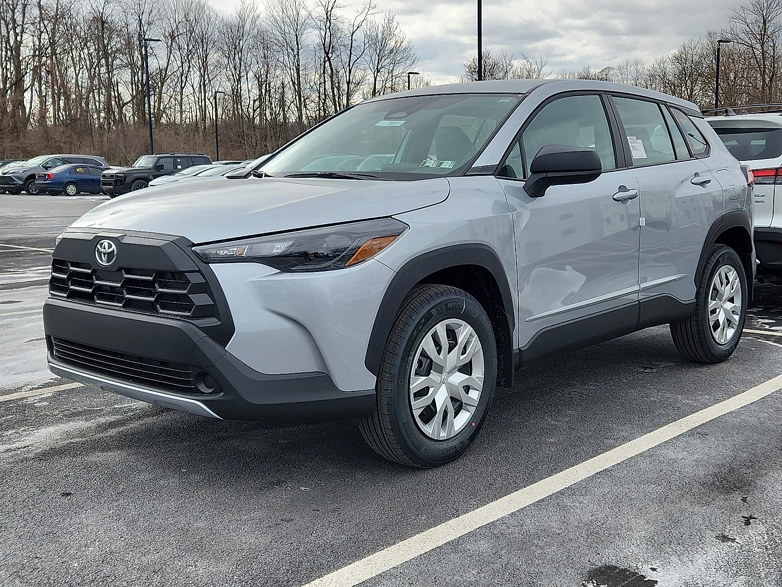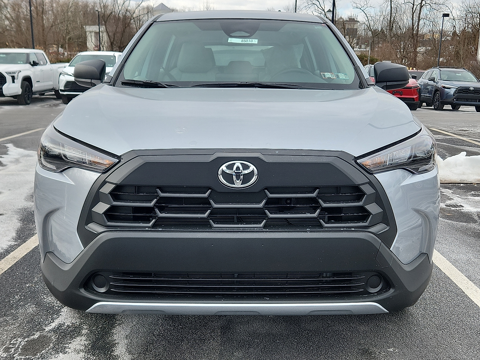 Includes ToyotaCare-2 Years of Complimentary Maintenance & Roadside Assistance. Free Yearly PA State Inspection plus our TeamMate Rewards program gives you 20% back in the form of reward points for every dollar spent in our service department. Each point is worth $1 and may be used towards future vehicle service, future vehicle purchases, accessories, and tires. We want you to be Part of the Team! 50 State Emissions - Includes Emissions: LEV3-SULEV30 emissions,Emissions tiers: Tier 3 Bin 30 emissions, All-Weather Floor Liners are precision-fit and crafted from durable weather-resistant material. They protect the interior with signature Toyota style. Includes: All-Weather Floor Liners Cargo Tray - Includes Floor mats: Rubber front and rear floor mats,Cargo mats: Vinyl/rubber cargo mat, Body side moldings help protect against careless door swings, runaway shopping carts and other parking lot mishaps while adding a little extra exterior style .Color-matched to the exterior paint finish, Help prevent door edge dings and chipped paint with this protective finishing touch. .Thermoplastic-coated stainless steel is precisely color matched to the exterior paint .Compression-fitted to door edge contours, Help protect your paint finish from road debris and the damage it causes. .Set includes four mudguards with hardware - Includes Front splash guards,Rear splash guards, Rear bumper protector is made of high-grade, durable material and designed to fit to your Corolla Cross rear bumper 2026 Toyota Corolla Cross Sonic Silver L 2.0L I4 169hp 151ft. lbs. 10-Speed Shiftable CVT FWD 31/33 City/Highway MPG 10-Speed Shiftable CVT, 12V power outlets: 1 12V power outlet, 2.0L I4 169hp 151ft. lbs., 3-point seatbelt: Rear seat center 3-point seatbelt, 50 STATE EMISSIONS - INCLUDES EMISSIONS: LEV3-SULEV30 EMISSIONS,EMISSIONS TIERS: TIER 3 BIN 30 EMISSIONS, ABS Brakes: 4-wheel antilock (ABS) brakes, ABS Brakes: Four channel ABS brakes, Accessory power: Retained accessory power, Adaptive cruise control: Full-Speed Range Dynamic Radar Cruise Control (DRCC), Air conditioning: Yes, All-in-one key: All-in-one remote fob and ignition key, ALL-WEATHER FLOOR LINERS ARE PRECISION-FIT AND CRAFTED FROM DURABLE WEATHER-RESISTANT MATERIAL. THEY PROTECT THE INTERIOR WITH SIGNATURE TOYOTA STYLE. INCLUDES: ALL-WEATHER FLOOR LINERS CARGO TRAY - INCLUDES FLOOR MATS: RUBBER FRONT AND REAR FLOOR MATS,CARGO MATS: VINYL/RUBBER CARGO MAT, Alternator Type: Alternator, Antenna: Integrated roof audio antenna, Armrests front center: Front seat center armrest, Auto door locks: Auto-locking doors, Auto headlights: Auto off headlight control, Auto high-beam headlights: Automatic High Beams (AHB) auto high-beam headlights, Automatic brake hold, Autonomous cruise control: Hands-on cruise control, Basic warranty: 36 month/36,000 miles, Battery charge warning, Battery run down protection, Battery type: Lead acid battery, Beverage holders rear: Rear beverage holders, Beverage holders: Front beverage holders, Body panels: Fully galvanized steel body panels with side impact beams, BODY SIDE MOLDINGS HELP PROTECT AGAINST CARELESS DOOR SWINGS, RUNAWAY SHOPPING CARTS AND OTHER PARKING LOT MISHAPS WHILE ADDING A LITTLE EXTRA EXTERIOR STYLE .COLOR-MATCHED TO THE EXTERIOR PAINT FINISH, Bodyside cladding: Black bodyside cladding, Brake assist system, Brake type: 4-wheel disc brakes, Bulb warning: Bulb failure warning, Bumper insert: Body-colored front and rear bumper inserts, Bumper rub strip front: Black front bumper rub strip, Bumpers front: Body-colored front bumper, Bumpers rear: Black rear bumper, Cabin air filter, Cargo access: Manual cargo area access release, Cargo floor type: Carpet cargo area floor, Cargo light: Cargo area light, Cargo tie downs: Cargo area tie downs, Child door locks: Manual rear child safety door locks, Climate control: Manual climate control, Clock: Digital clock, Concealed cargo storage: Cargo area concealed storage, Configurable instrumentation gauges, Console insert material: Piano black and metal-look console insert, Corrosion perforation warranty: 60 month/unlimited, Cruise control: Cruise control with steering wheel mounted controls, Cylinder head material: Aluminum cylinder head, Day/Night rearview mirror, Delay off headlights: Delay-off headlights, Door ajar warning: Rear cargo area ajar warning, Door bins front: Driver and passenger door bins, Door bins rear: Rear door bins, Door handle material: Body-colored door handles, Door locks: Power door locks with 2 stage unlocking, Door mirror style: Black door mirrors, Door mirror type: Standard style side mirrors, Door mirrors: Power door mirrors, Drive type: Front-wheel drive, Driver attention monitor: Vehicle Sway Warning driver attention alert, Driver foot rest, Driver information center, Driver seat direction: Driver seat with 6-way directional controls, Drivetrain selectable: Driver selectable drivetrain mode, DRL preference setting, Eco Feedback: ECO feedback display gauge, Electronic parking brake, Electronic stability control: Electronic stability control system, Emergency SOS Capable: Safety Connect (10-year trial) vehicle integrated emergency SOS system, Engine block material: Aluminum engine block, Engine Configuration: Dynamic Force I4, Engine Location: Front mounted engine, Engine Mounting direction: Transverse mounted engine, Engine Short: Dynamic Force 2L I-4 DOHC, Engine temperature warning, Engine: Dynamic Force 2L I-4 port/direct injection, DOHC, variable valve control, regular unleaded, engine with 169HP, Engine/electric motor temperature gauge, External memory: External memory control, First-row windows: Power first-row windows, Floor console storage: Covered floor console storage, Floor console: Full floor console, Floor coverage: Full floor coverage, Floor covering: Full carpet floor covering, Folding door mirrors: Manual folding door mirrors, Folding rear seats: 60-40 folding rear seats, Forward collision warning: Toyota Safety Sense (TSS) 3.0 forwar