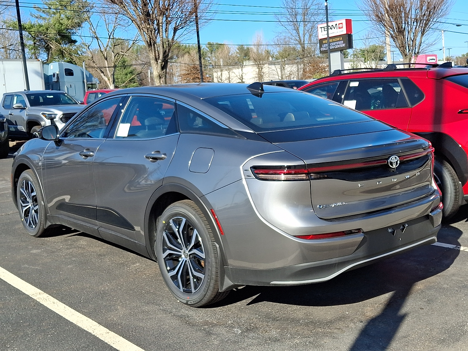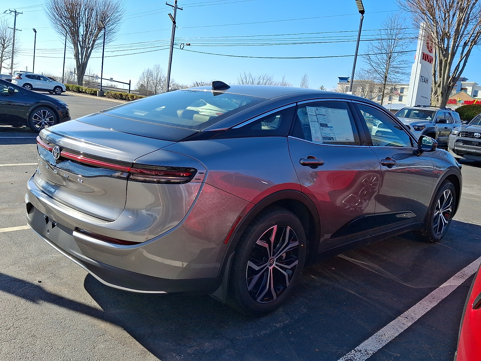 Includes ToyotaCare-2 Years of Complimentary Maintenance & Roadside Assistance. Free Yearly PA State Inspection plus our TeamMate Rewards program gives you 20% back in the form of reward points for every dollar spent in our service department. Each point is worth $1 and may be used towards future vehicle service, future vehicle purchases, accessories, and tires. We want you to be Part of the Team! 50 State Emissions - Includes Emissions: LEV3-SULEV30 emissions,Emissions tiers: Tier 3 Bin 30 emissions, All-Weather Floor Liner Package provides precision-fit , durable weather-resistant floor liners and trunk mat. Designed to protect the interior with signature Toyota style. Includes: . All-Weather Floor Liners . All-Weather Trunk Mat - Includes Floor mats: Rubber front and rear floor mats,Cargo mats: Vinyl/rubber cargo mat, Help protect your paint finish from road debris and the damage it causes. . Set includes four mudguards - Includes Front splash guards,Rear splash guards, Illuminated Package includes illuminated door sills and logo side puddle lamps. Door sills illuminate icy white w Toyota Crown logo when front doors are open. Logo side puddle lamps illuminate Toyota logo when the front doors are open. Includes: . Illuminated Door Sills . Logo Side Puddle Lamps 2026 Toyota Crown Heavy Metal XLE 2.5L Hybrid I4 236hp CVT AWD 42/41 City/Highway MPG 12V power outlets: 1 12V power outlet, 2.5L Hybrid I4 236hp, 3-point seatbelt: Rear seat center 3-point seatbelt, 4WD type: E-Four AWD automatic full-time AWD, 50 STATE EMISSIONS - INCLUDES EMISSIONS: LEV3-SULEV30 EMISSIONS,EMISSIONS TIERS: TIER 3 BIN 30 EMISSIONS, ABS Brakes: 4-wheel antilock (ABS) brakes, ABS Brakes: Four channel ABS brakes, Accessory power: Retained accessory power, Adaptive cruise control: Full-Speed Range Dynamic Radar Cruise Control (DRCC), Air conditioning: Yes, All-in-one key: All-in-one remote fob and ignition key, ALL-WEATHER FLOOR LINER PACKAGE PROVIDES PRECISION-FIT , DURABLE WEATHER-RESISTANT FLOOR LINERS AND TRUNK MAT. DESIGNED TO PROTECT THE INTERIOR WITH SIGNATURE TOYOTA STYLE. INCLUDES: . ALL-WEATHER FLOOR LINERS . ALL-WEATHER TRUNK MAT - INCLUDES FLOOR MATS: RUBBER FRONT AND REAR FLOOR MATS,CARGO MATS: VINYL/RUBBER CARGO MAT, Alternator Type: Hybrid electric motor alternator, Antenna: Window grid audio antenna, Armrests front center: Front seat center armrest, Armrests rear: Rear seat center armrest, Auto door locks: Auto-locking doors, Auto headlights: Auto on/off headlight control, Auto high-beam headlights: Automatic High Beams (AHB) auto high-beam headlights, Automatic brake hold, Autonomous cruise control: Lane Tracing Assist (LTA) hands-on cruise control, AWD, Basic warranty: 36 month/36,000 miles, Battery charge warning, Battery run down protection, Battery type: Lead acid battery, Beverage holders rear: Rear beverage holders, Beverage holders: Front beverage holders, Blind spot: Blind Spot Monitor (BSM), Body panels: Fully galvanized steel body panels with side impact beams, Bodyside cladding: Black bodyside cladding, Bodyside insert: Black bodyside insert, Brake assist system, Brake type: 4-wheel disc brakes, Built-in virtual assistant: Intelligent Assistant built-in virtual assistant, Bulb warning: Bulb failure warning, Bumper insert: Metal-look front and black rear bumper inserts, Bumper rub strip front: Black front bumper rub strip, Bumper rub strip rear: Black rear bumper rub strip, Bumpers front: Body-colored front bumper, Bumpers rear: Body-colored rear bumper, Cabin air filter, Cargo access: Power cargo area access release, Cargo floor type: Carpet cargo area floor, Cargo light: Cargo area light, Child door locks: Manual rear child safety door locks, Climate control: Automatic climate control, Clock: Digital clock, Compass, Configurable instrumentation gauges, Console insert material: Body-colored console insert, Cooled front seats: Ventilated driver and front passenger seats, Corrosion perforation warranty: 60 month/unlimited, Cruise control: Cruise control with steering wheel mounted controls, CVT, Cylinder head material: Aluminum cylinder head, Day/Night rearview mirror, Delay off headlights: Delay-off headlights, Distance alert: Proactive Driving Assist (PDA) - Deceleration Assist (DA) following distance alert, Door ajar warning: Rear cargo area ajar warning, Door bins front: Driver and passenger door bins, Door bins rear: Rear door bins, Door handle material: Body-colored door handles, Door locks: Power door locks with 2 stage unlocking, Door mirror style: Body-colored door mirrors, Door mirror type: Standard style side mirrors, Door mirror with tilt-down in reverse: Power driver and passenger door mirrors with tilt down in reverse, Door panel insert: Body-colored door panel insert, Door trim insert: Vinyl door trim insert, Drive type: All-wheel drive, Driver attention monitor: Vehicle Sway Warning driver attention alert, Driver foot rest, Driver information center, Driver lumbar: Driver seat with 2-way power lumbar, Driver seat direction: Driver seat with 8-way directional controls, Driver selectable regen levels, Drivetrain selectable: Driver selectable drivetrain mode, Dual-zone front climate control, Eco Feedback: ECO feedback display gauge, Electric power regeneration gauge: Electric power/regeneration gauge, Electric powertrain: HEV (hybrid electric vehicle), Electronic parking brake, Electronic stability control: Vehicle Stability Control (VSC) electronic stability control system, Emergency SOS Capable: Safety Connect (5-year minimum) vehicle integrated emergency SOS system, Engine block material: Aluminum engine block, Engine Location: Front mounted engine, Engine Mounting direction: Transverse mounted engine, Engine Short: Dynamic Force 2.5L I-4 DOHC, Engine/electric motor temperature gauge, Evasion assist system: Proactive Driving Assist (PDA) - Obstacle Anticipation Assist (OAA) evasion assist system, Exit warning: Safe Exit Alert (SEA) external exit warning system, External aco