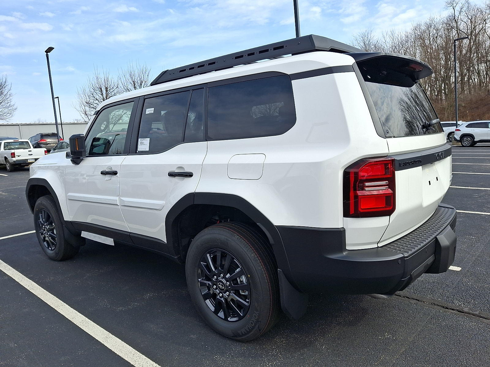 Includes ToyotaCare-2 Years of Complimentary Maintenance & Roadside Assistance. Free Yearly PA State Inspection plus our TeamMate Rewards program gives you 20% back in the form of reward points for every dollar spent in our service department. Each point is worth $1 and may be used towards future vehicle service, future vehicle purchases, accessories, and tires. We want you to be Part of the Team! Body side moldings help protect against careless door swings and other parking lot mishaps while adding a little extra exterior style. .Color-matched to the exterior paint finish .Body side moldings follow the lower door styling lines to enhance the vehicle exterior, Engineered to precisely fit your vehicle, all-weather cargo mats are made from durable, flexible, weather-resistant material that cleans easily. .Precise injection molding uses Toyota's original vehicle design data for a perfect fit .Liners feature ribbed channels to better hold moisture .Skid-resistant backing helps keep the mat in place, Engineered to precisely fit your vehicle, all-weather floor liners are made from durable, flexible, weather-resistant material that cleans easily. .Precise injection molding uses Toyota's original vehicle design data for a perfect fit .Includes two piece 2nd row liner for more complete coverage .Liners feature ribbed channels to better hold moisture and a stylish vehicle logo on the front liners .Skid-resistant backing and quarter-turn fasteners help keep the liners in place, Federal Emissions - Includes Emissions: LEV3-ULEV50 emissions,Emissions tiers: Tier 3 Bin 50 emissions, Help prevent door edge dings and chipped paint with this protective finishing touch. . Thermoplastic-coated stainless steel is precisely color matched to the exterior paint . Blend seamlessly to complement exterior styling, The roof rack is designed to secure cargo with more confidence. .Provides additional secure tie-down points for various roof rack accessories - Includes Roof rack: Full roof rack,Maximum roof rack load: 165 lbs. maximum roof rack load 2026 Toyota Land Cruiser Ice Cap 1958 2.4L Hybrid Turbo I4 326hp 465ft. lbs. 8-Speed Shiftable Automatic 4X4 22/25 City/Highway MPG 2026 Cars.com SUV of the Year: Nominee 12V power outlets: 1 12V power outlet, 2.4L Hybrid Turbo I4 326hp 465ft. lbs., 3-point seatbelt: Rear seat center 3-point seatbelt, 4WD type: Full-time 4WD, 4X4, 8-Speed Shiftable Automatic, ABS Brakes: 4-wheel antilock (ABS) brakes, ABS Brakes: Four channel ABS brakes, Accessory power: Retained accessory power, Adaptive cruise control: Full-Speed Range Dynamic Radar Cruise Control (DRCC), Air conditioning: Yes, All-in-one key: All-in-one remote fob and ignition key, Alternator Type: Hybrid electric motor alternator, Antenna: Diversity antenna, Antenna: Window grid and roof mount audio antenna, Armrests front center: Front seat center armrest, Armrests rear: Rear seat center armrest, Auto door locks: Auto-locking doors, Auto headlights: Auto on/off headlight control, Auto high-beam headlights: Automatic High Beams (AHB) auto high-beam headlights, Automatic brake hold, Automatic curve slowdown cruise control: Proactive Driving Assist (PDA) - Deceleration Assist Automatic curve slowdown cruise control, Autonomous cruise control: Lane Tracing Assist (LTA) hands-on cruise control, Basic warranty: 36 month/36,000 miles, Battery charge warning, Battery run down protection, Battery type: Lead acid battery, Beverage holders rear: Rear beverage holders, Beverage holders: Front beverage holders, Blind spot: Blind Spot Monitor (BSM), Body panels: Fully galvanized steel body panels with side impact beams, BODY SIDE MOLDINGS HELP PROTECT AGAINST CARELESS DOOR SWINGS AND OTHER PARKING LOT MISHAPS WHILE ADDING A LITTLE EXTRA EXTERIOR STYLE. .COLOR-MATCHED TO THE EXTERIOR PAINT FINISH .BODY SIDE MOLDINGS FOLLOW THE LOWER DOOR STYLING LINES TO ENHANCE THE VEHICLE EXTERIOR, Brake assist system: Brake Assist (BA) brake assist system, Brake type: 4-wheel disc brakes, Bumper rub strip front: Metal-look front bumper rub strip, Bumper rub strip rear: Metal-look rear bumper rub strip, Bumpers front: Black front bumper, Bumpers rear: Black rear bumper, Cabin air filter, Cargo access: Power cargo area access release, Cargo floor type: Carpet cargo area floor, Cargo light: Cargo area light, Cargo tie downs: Cargo area tie downs, Cell traction battery: 40, Child door locks: Manual rear child safety door locks, Climate control: Automatic climate control, Clock: Digital clock, Compass, Compressor: Intercooled turbo, Concealed cargo storage: Cargo area concealed storage, Console insert material: Metal-look console insert, Corrosion perforation warranty: 60 month/unlimited, Cruise control: Cruise control with steering wheel mounted controls, Cushion airbag: Front seat cushion airbags, Cylinder head material: Aluminum cylinder head, Day/Night rearview mirror, Delay off headlights: Delay-off headlights, Distance alert: Proactive Driving Assist (PDA) - Deceleration Assist (DA) following distance alert, Door ajar warning: Rear cargo area ajar warning, Door bins front: Driver and passenger door bins, Door bins rear: Rear door bins, Door handle material: Black door handles, Door locks: Power door locks with 2 stage unlocking, Door mirror style: Black door mirrors, Door mirror type: Standard style side mirrors, Door mirrors: Power door mirrors, Drive type: Four-wheel drive, Driver attention monitor: Vehicle Sway Warning driver attention alert, Driver foot rest, Driver information center, Driver seat direction: Driver seat with 6-way directional controls, Drivetrain selectable: Drive Mode Select (DMS) driver selectable drivetrain mode, Dual-zone front climate control, Eco Feedback: ECO feedback display gauge, Electric power regeneration gauge: Electric power/regeneration gauge, Electric powertrain: HEV (hybrid electric vehicle), Electronic parking brake, Electronic stability control: Vehicle Stability Control Track Mode (VSC mode) electronic st