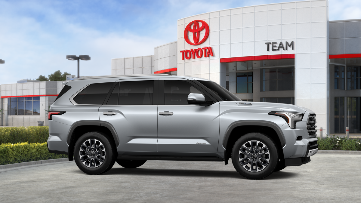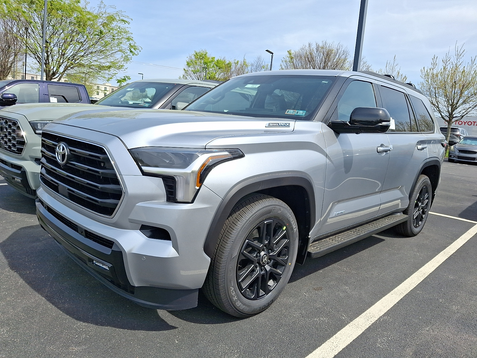 Includes ToyotaCare-2 Years of Complimentary Maintenance & Roadside Assistance. Free Yearly PA State Inspection plus our TeamMate Rewards program gives you 20% back in the form of reward points for every dollar spent in our service department. Each point is worth $1 and may be used towards future vehicle service, future vehicle purchases, accessories, and tires. We want you to be Part of the Team! 50 STATE EMISSIONS - Includes Emissions: LEV3-ULEV70 emissions,Emissions tiers: Tier 3 Bin 70 emissions, Help prevent door edge dings and chipped paint. . Thermoplastic-coated stainless steel is precisely matched to the exterior color, JBL 14-Speaker Premium Audio with Qi-Compatible Wireless Smartphone Charging and Charge Indicator Light - Includes Wireless Smartphone Charger,Speakers: JBL speakers,Amplifier: Premium grade amplifier,Digital signal processor,Speakers number: 14 speakers, Nightshade Package - Includes 20-in. black alloy wheels, black overfenders, and black accents - Includes Black Overfenders and Rear Bumper,Wheel well trim: Black wheel well trim,Bumper insert: Black rear bumper insert,Gloss Black Window Molding,20"TRD Sport Matte-Black Alloy Wheels,Gloss Black Mirror Caps,4x4 Badge,Gloss Black Tailgate Handle,Gloss Black Door Handles, Power Tilt/Slide Panoramic Roof w/Power Sunshade, Precision-fit and crafted from durable weather-resistant material, protect the interior with signature Toyota style. Includes: .All-Weather Floor Liners .All-Weather Cargo Mat - Includes Floor mats: Rubber front and rear floor mats,Cargo mats: Vinyl/rubber cargo mat, The roof cross bars are designed to integrate with the Sequoia's roof rails to secure cargo with more confidence. .Provides additional secure tie-down points for various roof rack accessories .Can support a maximum of 132 lbs. when weight is evenly distributed across both bars .Set of two black bars - Includes Roof rack: Full roof rack,Maximum roof rack load: 132 lbs. maximum roof rack load,Roof rails 2026 Toyota Sequoia Celestial Silver Metallic Limited 3.4L Hybrid Twin Turbo V6 437hp 583ft. lbs. 10-Speed Shiftable Automatic 4X4 19/22 City/Highway MPG 2026 ALG Residual Value Award Winner 10-Speed Shiftable Automatic, 12V power outlets: 1 12V power outlet, 3-point seatbelt: Rear seat center 3-point seatbelt, 3.4L Hybrid Twin Turbo V6 437hp 583ft. lbs., 4WD type: Multi-Mode part and full-time 4WD, 4X4, 50 STATE EMISSIONS - INCLUDES EMISSIONS: LEV3-ULEV70 EMISSIONS,EMISSIONS TIERS: TIER 3 BIN 70 EMISSIONS, ABS Brakes: 4-wheel antilock (ABS) brakes, ABS Brakes: Four channel ABS brakes, Accessory power: Retained accessory power, Adaptive cruise control: Full-Speed Range Dynamic Radar Cruise Control (DRCC), Air conditioning: Yes, Alternator Type: Hybrid electric motor alternator, Antenna: Fixed audio antenna, Armrests front center: Sliding front seat center armrest, Armrests front storage: Front seat armrest storage, Armrests rear: Second-row center armrest, Auto door locks: Auto-locking doors, Auto headlights: Auto on/off headlight control, Auto high-beam headlights: Automatic High Beams (AHB) auto high-beam headlights, Auto-dimming door mirror driver: Auto-dimming driver side mirror, Auto-dimming door mirror passenger: Auto-dimming passenger side mirror, Automatic brake hold, Autonomous cruise control: Lane Tracing Assist (LTA) hands-on cruise control, Aux input jack: Auxiliary input jack, Auxiliary rear heater, Basic warranty: 36 month/36,000 miles, Battery charge warning, Battery type: Lead acid battery, Bench seats: Third-row split-bench seat, Beverage holders rear: Rear beverage holders, Beverage holders: Front beverage holders, Blind spot: Blind Spot Monitor w/Lane Change Assist, Body panels: Fully galvanized steel body panels with side impact beams, Brake assist system: Pre-Collision System w/Brake Assist predictive brake assist system, Brake type: 4-wheel disc brakes, Built-in virtual assistant: Intelligent Assistant built-in virtual assistant, Bumpers front: Body-colored front bumper, Bumpers rear: Body-colored rear bumper, Cabin air filter, Camera: Panoramic View Monitor aerial view camera, Cargo access: Proximity cargo area access release, Cargo floor type: Carpet cargo area floor, Cargo light: Cargo area light, Cargo tie downs: Cargo area tie downs, Cell traction battery: 240, Child door locks: Manual rear child safety door locks, Climate control: Automatic climate control, Clock: Digital clock, Compressor: Twin turbo, Concealed cargo storage: Cargo area concealed storage, Configurable instrumentation gauges, Console insert material: Metal-look console insert, Cooled front seats: Ventilated driver and front passenger seats, Corrosion perforation warranty: 60 month/unlimited, Cruise control: Cruise control with steering wheel mounted controls, Cylinder head material: Aluminum cylinder head, Dashboard material: Leatherette upholstered dashboard, Day/Night rearview mirror, Delay off headlights: Delay-off headlights, Door ajar warning: Rear cargo area ajar warning, Door bins front: Driver and passenger door bins, Door bins rear: Rear door bins, Door locks: Power door locks with 2 stage unlocking, Door mirror type: Standard style side mirrors, Door mirror with tilt-down in reverse: Power driver and passenger door mirrors with tilt down in reverse, Door panel insert: Metal-look door panel insert, Door trim insert: Leatherette door trim insert, Drive type: Four-wheel drive, Driver attention monitor: Vehicle Sway Warning driver attention alert, Driver foot rest, Driver information center, Driver lumbar: Driver seat with 2-way power lumbar, Driver seat direction: Driver seat with 8-way directional controls, Drivetrain selectable: Driver selectable drivetrain mode, Dual-zone front climate control, Electric power regeneration gauge: Electric power/regeneration gauge, Electric powertrain: HEV (hybrid electric vehicle), Electronic parking brake, Electronic stability control: Vehicle Stability Control (VSC) electronic stability control system