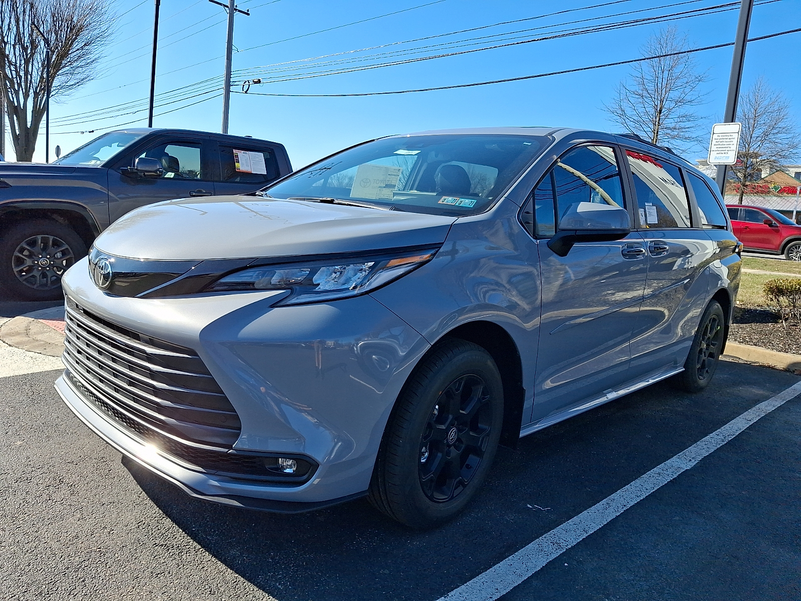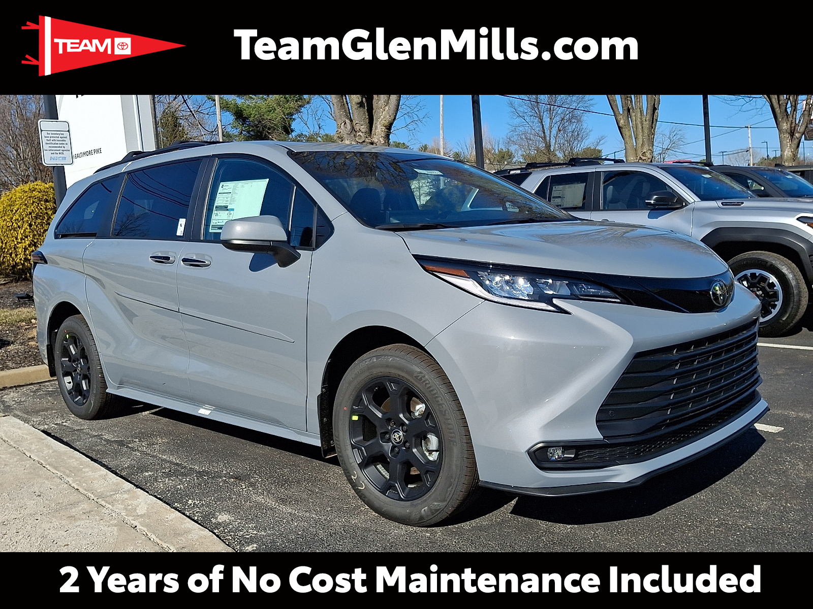 Includes ToyotaCare-2 Years of Complimentary Maintenance & Roadside Assistance. Free Yearly PA State Inspection plus our TeamMate Rewards program gives you 20% back in the form of reward points for every dollar spent in our service department. Each point is worth $1 and may be used towards future vehicle service, future vehicle purchases, accessories, and tires. We want you to be Part of the Team! 50 State Emissions - Includes Emissions: ULEV II emissions,Emissions tiers: Tier 3 Bin 30 emissions, Body side moldings help protect against careless door swings, runaway shopping carts and other parking lot mishaps while adding a little extra exterior style. .Color-matched to the exterior paint, Door sill protectors help guard against interior door scuffs, scrapes and scratches. . Made of durable, skid-resistant materials . Features a Sienna logo, Help protect your paint finish from road debris and the damage it causes. .Designed to integrate with Sienna exterior styling - Includes Front splash guards,Rear splash guards, Provide additional secure tie-down points for a variety of roof rack accessories .LE, XLE, and XSE models require optional Side Rails to accommodate Cross Bars - Includes Roof rack: Full roof rack,Maximum roof rack load: 150 lbs. maximum roof rack load,Roof rails, WOODLAND EDITION 2026 Toyota Sienna Cement Woodland Edition 2.5L Hybrid I4 245hp CVT w/Sequential Shift Mode AWD 34/36 City/Highway MPG 12V power outlets: 1 12V power outlet, 2.5L Hybrid I4 245hp, 4WD type: Automatic full-time AWD, 50 STATE EMISSIONS - INCLUDES EMISSIONS: ULEV II EMISSIONS,EMISSIONS TIERS: TIER 3 BIN 30 EMISSIONS, ABS Brakes: 4-wheel antilock (ABS) brakes, ABS Brakes: Four channel ABS brakes, Accessory power: Retained accessory power, Adaptive cruise control: Full-Speed Range Dynamic Radar Cruise Control (DRCC), Air conditioning: Yes, All-in-one key: All-in-one remote fob and ignition key, Alternator Type: Hybrid electric motor alternator, Amplifier: 1200W amplifier, Antenna: Diversity antenna, Antenna: Window grid and roof mount audio antenna, Armrests front driver: Driver seat armrest, Armrests front passenger: Front passenger seat armrest, Armrests rear mounted: Second-row seat mounted armrests, Auto door locks: Auto-locking doors, Auto headlights: Auto on/off headlight control, Auto high-beam headlights: Automatic High Beams (AHB) auto high-beam headlights, Auto-dimming door mirror driver: Auto-dimming driver side mirror, Auto-dimming door mirror passenger: Auto-dimming passenger side mirror, Automatic brake hold, Autonomous cruise control: Hands-on cruise control, Aux input jack: Auxiliary input jack, AWD, Basic warranty: 36 month/36,000 miles, Battery charge warning, Battery run down protection, Battery type: Lead acid battery, Bench seats: Third-row split-bench seat, Beverage holders rear: Rear beverage holders, Beverage holders: Front beverage holders, Blind spot: Blind Spot Monitor (BSM), Body panels: Fully galvanized steel body panels with side impact beams, BODY SIDE MOLDINGS HELP PROTECT AGAINST CARELESS DOOR SWINGS, RUNAWAY SHOPPING CARTS AND OTHER PARKING LOT MISHAPS WHILE ADDING A LITTLE EXTRA EXTERIOR STYLE. .COLOR-MATCHED TO THE EXTERIOR PAINT, Brake assist system: Predictive brake assist system, Brake type: 4-wheel disc brakes, Bumper rub strip rear: Black rear bumper rub strip, Bumpers front: Body-colored front bumper, Bumpers rear: Body-colored rear bumper, Cabin air filter, Cargo access: Power cargo area access release, Cargo floor type: Carpet cargo area floor, Cargo light: Cargo area light, Cargo tie downs: Cargo area tie downs, Cell traction battery: 40, Child door locks: Manual rear child safety door locks, Climate control: Automatic climate control, Clock: Digital clock, Compass, Configurable instrumentation gauges, Console insert material: Simulated wood console insert, Conversation mirror, Corrosion perforation warranty: 60 month/unlimited, Cruise control: Cruise control with steering wheel mounted controls, Cushion airbag: Front passenger seat cushion airbag, CVT w/Sequential Shift Mode, Cylinder head material: Aluminum cylinder head, Day/Night rearview mirror, Delay off headlights: Delay-off headlights, Digital signal processor: Clari-Fi digital signal processor, Door ajar warning: Rear cargo area ajar warning, Door bins front: Driver and passenger door bins, Door bins rear: Rear door bins, Door handle material: Chrome door handles, Door locks: Power door locks with 2 stage unlocking, Door mirror style: Body-colored door mirrors, Door mirror type: Standard style side mirrors, Door mirrors: Power door mirrors, Door panel insert: Simulated wood and metal-look door panel insert, DOOR SILL PROTECTORS HELP GUARD AGAINST INTERIOR DOOR SCUFFS, SCRAPES AND SCRATCHES. . MADE OF DURABLE, SKID-RESISTANT MATERIALS . FEATURES A SIENNA LOGO, Door trim insert: Leatherette door trim insert, Drive type: All-wheel drive, Driver foot rest, Driver lumbar: Driver seat with 2-way power lumbar, Driver seat direction: Driver seat with 8-way directional controls, DRL preference setting, Dual-zone front climate control, Dual-zone rear climate control, Eco Feedback: ECO feedback display gauge, Electric power regeneration gauge: Electric power/regeneration gauge, Electric powertrain: HEV (hybrid electric vehicle), Electronic parking brake, Electronic stability control: Electronic stability control system, Emergency SOS Capable: Vehicle integrated emergency SOS system, Engine block material: Aluminum engine block, Engine Configuration: Dynamic Force I4, Engine cooler: Engine oil cooler, Engine Location: Front mounted engine, Engine Mounting direction: Transverse mounted engine, Engine Short: Dynamic Force 2.5L I-4 DOHC, Engine: Dynamic Force 2.5L I-4 port/direct injection, DOHC, VVT-iE/VVT-i variable valve control, regular unleaded, engine with 245HP, Engine/electric motor temperature gauge, External acoustic pedestrian alert, External memory: External memory control, First-row sunroof: First-row sl