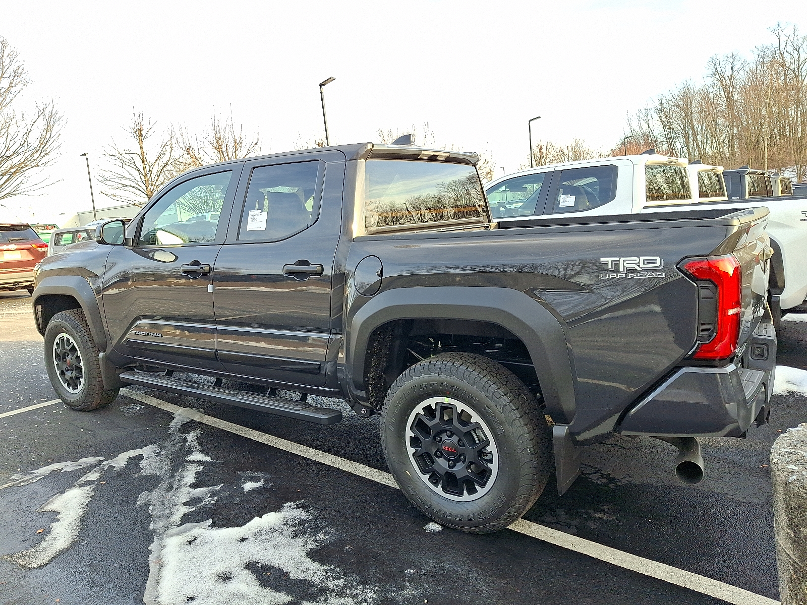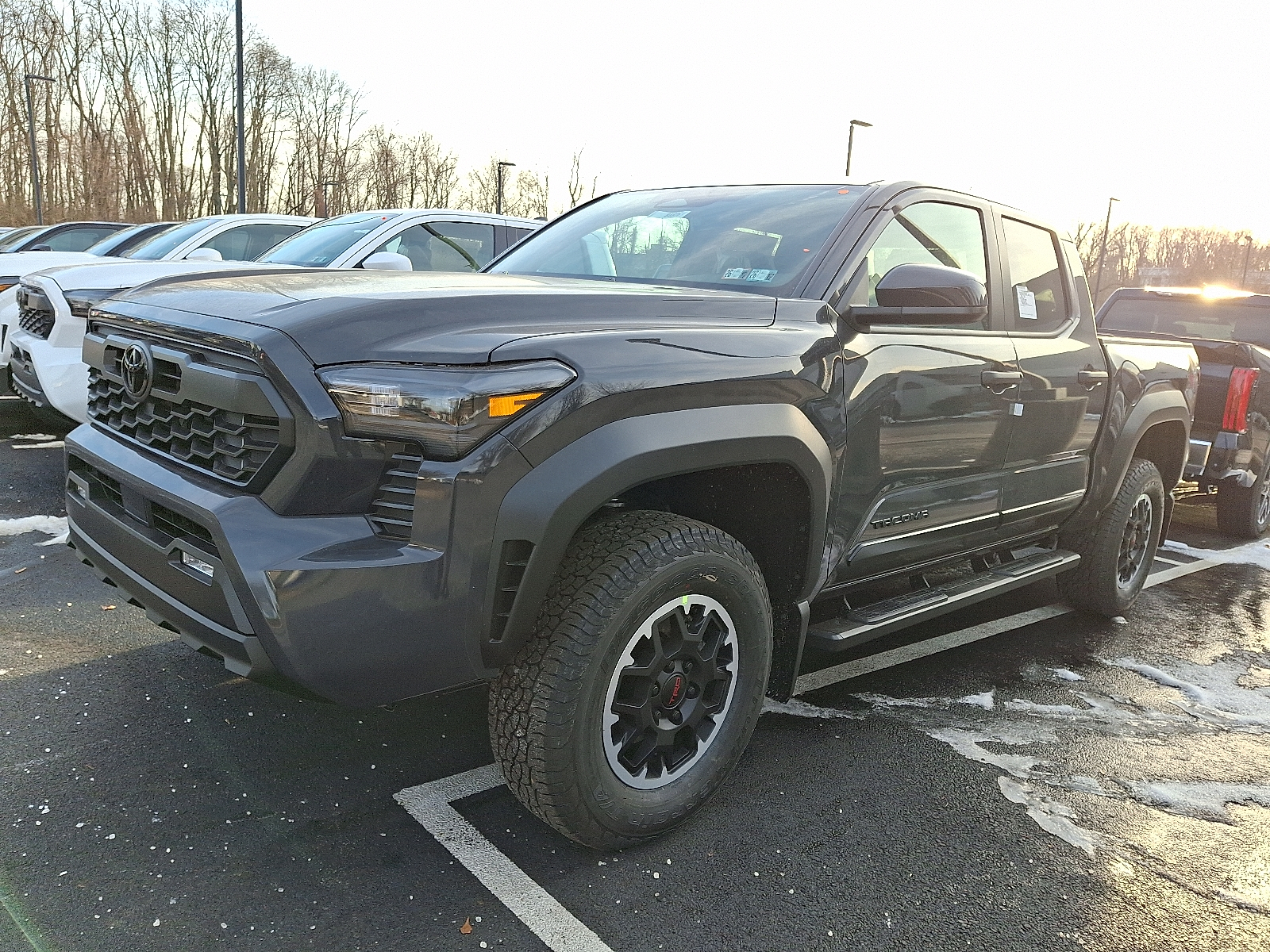 Includes ToyotaCare-2 Years of Complimentary Maintenance & Roadside Assistance. Free Yearly PA State Inspection plus our TeamMate Rewards program gives you 20% back in the form of reward points for every dollar spent in our service department. Each point is worth $1 and may be used towards future vehicle service, future vehicle purchases, accessories, and tires. We want you to be Part of the Team! 50 State Emissions - Includes Emissions: LEV3-ULEV50 emissions,Emissions tiers: Tier 3 Bin 50 emissions, Body side moldings help protect against careless door swings, runaway shopping carts and other parking lot mishaps while adding a little extra exterior style . Color-matched to the exterior paint finish, Engineered to precisely fit your vehicle, all-weather floor liners are made from durable, flexible, weather-resistant material that cleans easily. . Precise injection molding uses Toyota's original vehicle design data for a perfect fit . Liners feature ribbed channels to better hold moisture with a stylish vehicle logo . Skid-resistant backing and driver-side quarter-turn fasteners help keep the liners in place, Heated Front Seats, Help prevent door edge dings and chipped paint with this protective finishing touch. . Thermoplastic-coated stainless steel is precisely matched to the exterior finish . Compression-fitted to door edge contours . Blend seamlessly to complement exterior styling, TRD Off Road Package: All Content Included as Standard Equipment, Whether or not your truck is lifted, you might need a step up. Tube steps ease entry into the cab while complementing Tacoma's good looks. . Meets all Toyota-required load, cyclic and durability testing . Laser-cut brackets to ensure fit and appearance, then powder- coated to protect against the elements 2026 Toyota Tacoma Underground TRD Off Road 2.4L Turbo I4 278hp 317ft. lbs. 8-Speed Shiftable Automatic 4X4 19/23 City/Highway MPG 12V power outlets: 2 12V power outlets, 2.4L Turbo I4 278hp 317ft. lbs., 3-point seatbelt: Rear seat center 3-point seatbelt, 4WD type: Part-time 4WD, 4X4, 50 STATE EMISSIONS - INCLUDES EMISSIONS: LEV3-ULEV50 EMISSIONS,EMISSIONS TIERS: TIER 3 BIN 50 EMISSIONS, 8-Speed Shiftable Automatic, ABS Brakes: 4-wheel antilock (ABS) brakes, ABS Brakes: Four channel ABS brakes, Accessory power: Retained accessory power, Adaptive cruise control: Full-Speed Range Dynamic Radar Cruise Control (DRCC), Air conditioning: Yes, All-in-one key: All-in-one remote fob and ignition key, Alternator Type: Alternator, Antenna: Integrated roof audio antenna, Armrests front center: Front seat center armrest, Auto door locks: Auto-locking doors, Auto headlights: Auto on/off headlight control, Auto high-beam headlights: Automatic High Beams (AHB) auto high-beam headlights, Automatic curve slowdown cruise control, Autonomous cruise control: Hands-on cruise control, Basic warranty: 36 month/36,000 miles, Battery charge warning, Battery run down protection, Battery type: Lead acid battery, Beverage holders rear: Rear beverage holders, Beverage holders: Front beverage holders, Blind spot: Blind Spot Monitor (BSM), Body accent: Exterior decal, Body panels: Galvanized steel/aluminum body panels with side impact beams, BODY SIDE MOLDINGS HELP PROTECT AGAINST CARELESS DOOR SWINGS, RUNAWAY SHOPPING CARTS AND OTHER PARKING LOT MISHAPS WHILE ADDING A LITTLE EXTRA EXTERIOR STYLE . COLOR-MATCHED TO THE EXTERIOR PAINT FINISH, Box style: Standard composite style pickup box, Brake assist system: Pre-Collision System w/Brake Assist predictive brake assist system, Brake type: 4-wheel disc brakes, Bumper rub strip front: Black front bumper rub strip, Bumper rub strip rear: Black rear bumper rub strip, Bumpers front: Body-colored front bumper, Bumpers rear: Body-colored rear bumper, Cab mounted cargo light: LED cab mounted cargo light, Cabin air filter, Child door locks: Manual rear child safety door locks, Climate control: Automatic climate control, Clock: Digital clock, Compressor: Intercooled turbo, Configurable instrumentation gauges, Corrosion perforation warranty: 60 month/unlimited, Cruise control: Cruise control with steering wheel mounted controls, Cylinder head material: Aluminum cylinder head, Day/Night rearview mirror, Door ajar warning, Door bins front: Driver and passenger door bins, Door bins rear: Rear door bins, Door handle material: Black door handles, Door locks: Power door locks with 2 stage unlocking, Door mirror style: Body-colored door mirrors, Door mirror type: Standard style side mirrors, Door mirrors: Power door mirrors, Door panel insert: Metal-look door panel insert, Door trim insert: Cloth door trim insert, Drive type: Four-wheel drive, Driver foot rest, Driver information center, Driver lumbar: Driver seat with 2-way power lumbar, Driver seat direction: Driver seat with 6-way directional controls, Easy lower tailgate, Electronic parking brake, Electronic stability control: Electronic stability control system, Emergency SOS Capable: Safety Connect (up to 10-year trial subscription) vehicle integrated emergency SOS system, Engine block material: Aluminum engine block, Engine cooler: Engine oil cooler, Engine Cylinders: I-FORCE I4, Engine Location: Front mounted engine, Engine Mounting direction: Longitudinal mounted engine, Engine Short: I-FORCE 2.4L I-4 DOHC, Engine: I-FORCE 2.4L I-4 port/direct injection, DOHC, variable valve control, intercooled turbo, regular unleaded, engine with 278HP, Engine/electric motor temperature gauge, ENGINEERED TO PRECISELY FIT YOUR VEHICLE, ALL-WEATHER FLOOR LINERS ARE MADE FROM DURABLE, FLEXIBLE, WEATHER-RESISTANT MATERIAL THAT CLEANS EASILY. . PRECISE INJECTION MOLDING USES TOYOTA'S ORIGINAL VEHICLE DESIGN DATA FOR A PERFECT FIT . LINERS FEATURE RIBBED CHANNELS TO BETTER HOLD MOISTURE WITH A STYLISH VEHICLE LOGO . SKID-RESISTANT BACKING AND DRIVER-SIDE QUARTER-TURN FASTENERS HELP KEEP THE LINERS IN PLACE, External memory: External memory control, Fenders: Black fender flares, First-row windows: Power 