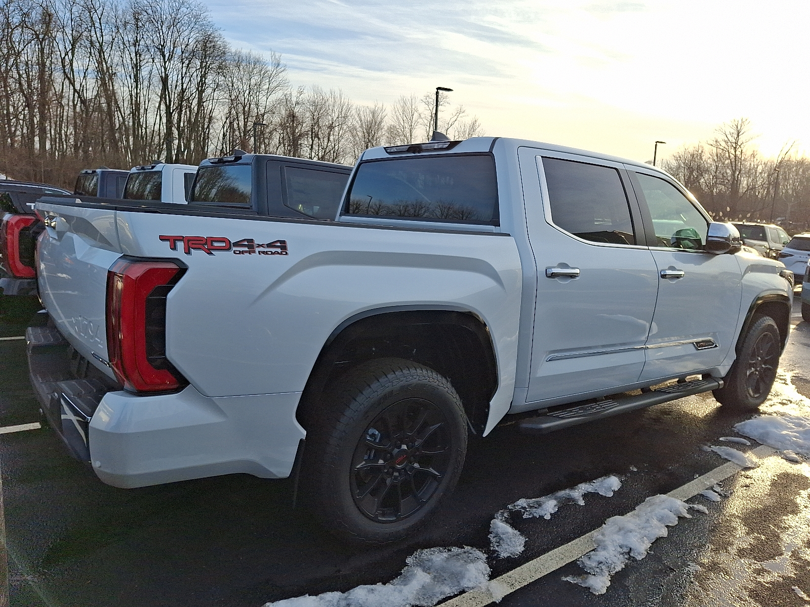 Includes ToyotaCare-2 Years of Complimentary Maintenance & Roadside Assistance. Free Yearly PA State Inspection plus our TeamMate Rewards program gives you 20% back in the form of reward points for every dollar spent in our service department. Each point is worth $1 and may be used towards future vehicle service, future vehicle purchases, accessories, and tires. We want you to be Part of the Team! 10-in. color Head-Up Display - Includes Head up display: Head-up display,Speedometer: Redundant digital speedometer, 50 State Emissions - Includes Emissions: LEV3-ULEV70 emissions,Emissions tiers: Tier 3 Bin 70 emissions, Add style and function with a set of black dual step running boards. They make it easier to step into the cab, and they complement the rugged good looks of the Tundra. .Skid-resistant step pads help ensure secure footing .Sleek design enhances the finished look of the vehicle, Get the spray-on bedliner that's as tough and durable as your Tundra. Protect your bed from damage with this permanently bonded fixture. . New, Toyota-exclusive softer material to keep items from sliding in the bed . Toyota quality standards assure uniform thickness and a consistent texture . Textured surface is designed to prevent cargo from sliding . No lost cargo space, minimal added weight . Features a Tundra logo . Proprietary application method helps create a straight and crisp edge . Fully warranted; repairs completed quickly and easily at a Toyota dealership - Includes Bed liner: Spray-in pickup bed liner,Front seat upholstery: Leather front seat upholstery,Rear seat upholstery: Leather rear seat upholstery, Help prevent door edge dings and chipped paint with this protective finishing touch. . Thermoplastic-coated stainless steel is precisely matched to the exterior finish, PVM + BSM Outer Mirrors - Includes Heated door mirrors: Heated driver and passenger side door mirrors,Folding door mirrors: Power folding door mirrors,Blind spot: Blind Spot Monitor (BSM),Door mirror style: Chrome door mirrors, TRD Front Skid Plate, TRD Off-Road Package - Includes 20-in. TRD alloy wheels with all-terrain tires, TRD grille, "TRD OFF-ROAD"bed-side decal, off-road suspension with Bilstein shocks, skid plates, mud guards, red TRD engine start button, TRD leather-wrapped shift knob, aluminum sport pedals, electronically controlled locking rear differential, Multi-Terrain Select (MTS), Crawl Control (CRAWL), and Downhill Assist Control (DAC) - Includes 20"X 8.5"Black Alloy Wheels,265/60R20 Tires,Tires: P265/60HR20 AS BSW front and rear tires,Multi-Terrain Back Monitor,Front camera: Front mounted camera,Right camera: Right side camera,Left camera: Left side camera,Rear camera: Rear mounted camera,Camera: Panoramic View Monitor aerial view camera,Ground view camera: Multi-Terrain Monitor (MTM) ground view camera,Front and Rear Mud Guards,Front splash guards,Rear splash guards 2026 Toyota Tundra Hybrid Wind Chill Pearl 1794 Edition CrewMax 5.5' Bed 3.4L Hybrid Twin Turbo V6 437hp 583ft. lbs. 10-Speed Shiftable Automatic 4X4 20/24 City/Highway MPG 10-IN. COLOR HEAD-UP DISPLAY - INCLUDES HEAD UP DISPLAY: HEAD-UP DISPLAY,SPEEDOMETER: REDUNDANT DIGITAL SPEEDOMETER, 10-Speed Shiftable Automatic, 12V power outlets: 1 12V power outlet, 3-point seatbelt: Rear seat center 3-point seatbelt, 3.4L Hybrid Twin Turbo V6 437hp 583ft. lbs., 4WD type: 4WDemand part-time 4WD, 4X4, 50 STATE EMISSIONS - INCLUDES EMISSIONS: LEV3-ULEV70 EMISSIONS,EMISSIONS TIERS: TIER 3 BIN 70 EMISSIONS, ABS Brakes: 4-wheel antilock (ABS) brakes, ABS Brakes: Four channel ABS brakes, Accessory power: Retained accessory power, Adaptive cruise control: Full-Speed Range Dynamic Radar Cruise Control (DRCC), ADD STYLE AND FUNCTION WITH A SET OF BLACK DUAL STEP RUNNING BOARDS. THEY MAKE IT EASIER TO STEP INTO THE CAB, AND THEY COMPLEMENT THE RUGGED GOOD LOOKS OF THE TUNDRA. .SKID-RESISTANT STEP PADS HELP ENSURE SECURE FOOTING .SLEEK DESIGN ENHANCES THE FINISHED LOOK OF THE VEHICLE, Aerodynamics: Active aerodynamics, Air conditioning: Yes, All-in-one key: All-in-one remote fob and ignition key, Alternator Type: Hybrid electric motor alternator, Ambient lighting, Amplifier: 440W amplifier, Antenna: Integrated roof audio antenna, Armrests front center: Front seat center armrest, Armrests rear: Rear seat center armrest, Auto door locks: Auto-locking doors, Auto headlights: Auto on/off headlight control, Auto high-beam headlights: Automatic High Beams (AHB) auto high-beam headlights, Auto levelling headlights: Auto-leveling headlights, Auto-dimming door mirror driver: Auto-dimming driver side mirror, Automated vehicle and trailer reverse assist, Automatic brake hold, Autonomous cruise control: Lane Tracing Assist (LTA) hands-on cruise control, Basic warranty: 36 month/36,000 miles, Battery charge warning, Battery type: Lead acid battery, Bed-rail protectors: Pickup bed-rail protectors, Beverage holders rear: Rear beverage holders, Beverage holders: Front beverage holders, Body panels: Fully galvanized steel body panels with side impact beams, Bodyside insert: Chrome bodyside insert, Box style: Standard composite style pickup box, Brake assist system: Brake Assist (BA) predictive brake assist system, Brake type: 4-wheel disc brakes, Built-in virtual assistant: Drive Connect Intelligent Assistant (1-year trial subscription) built-in virtual assistant, Bumper insert: Chrome rear bumper insert, Bumper rub strip front: Black front bumper rub strip, Bumper rub strip rear: Black rear bumper rub strip, Bumpers front: Body-colored front bumper, Bumpers rear: Body-colored rear bumper, Cab mounted cargo light: LED cab mounted cargo light, Cabin air filter, Cell traction battery: 240, Child door locks: Manual rear child safety door locks, Climate control: Automatic climate control, Clock: Digital clock, Compass, Compressor: Twin turbo, Configurable instrumentation gauges, Console insert material: Simulated wood and metal-look console insert, Cooled front seats: Ventilated driver a
