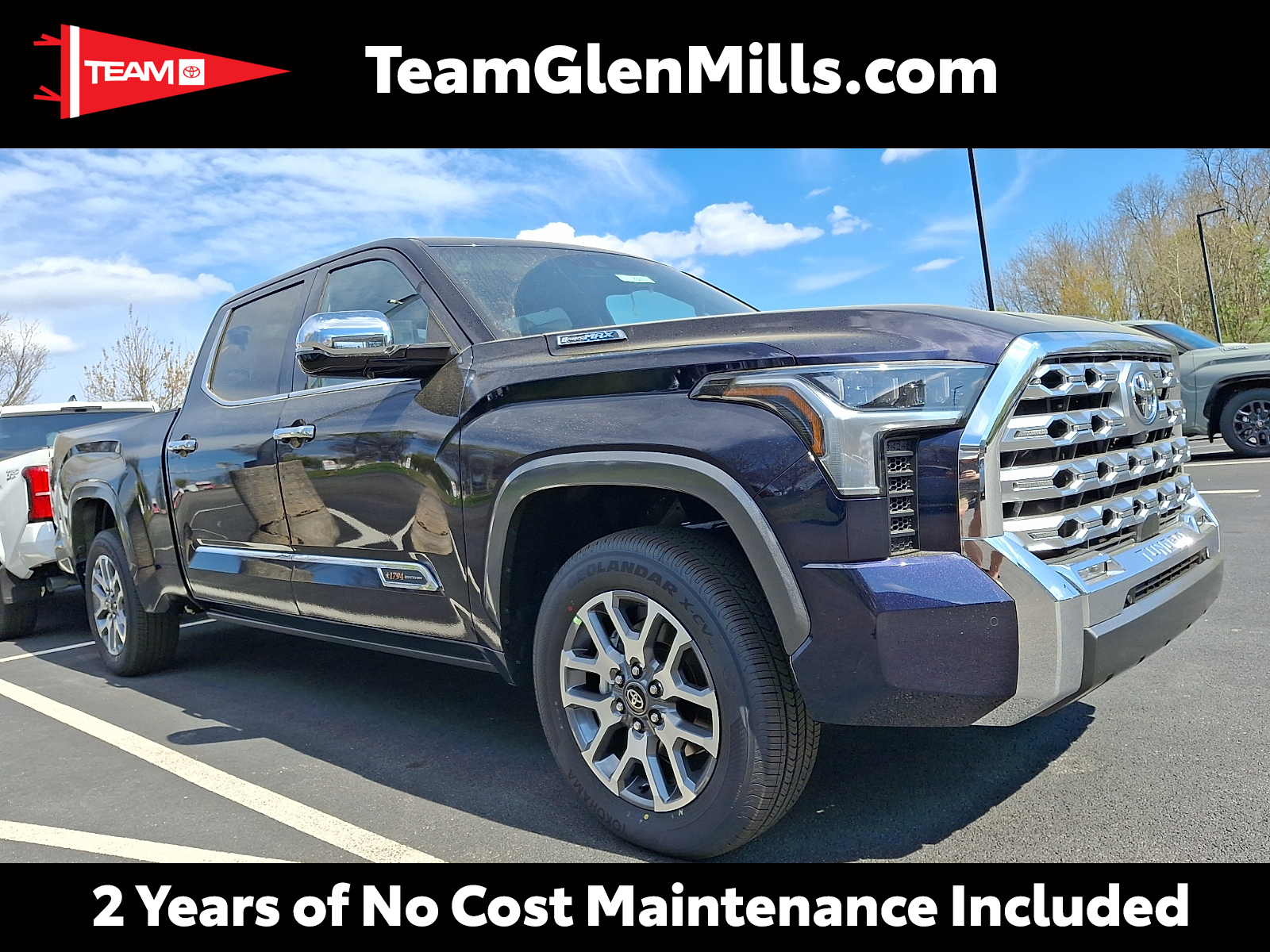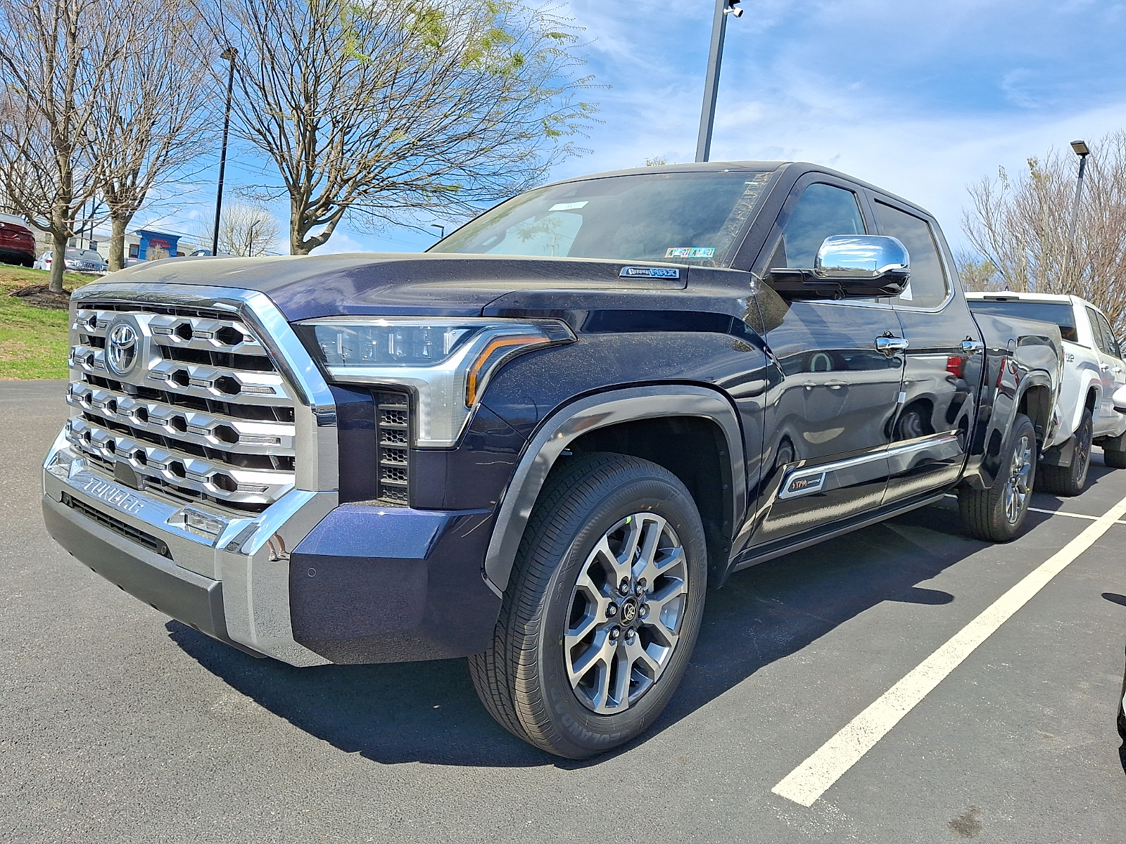Includes ToyotaCare-2 Years of Complimentary Maintenance & Roadside Assistance. Free Yearly PA State Inspection plus our TeamMate Rewards program gives you 20% back in the form of reward points for every dollar spent in our service department. Each point is worth $1 and may be used towards future vehicle service, future vehicle purchases, accessories, and tires. We want you to be Part of the Team! 10-in. color Head-Up Display - Includes Head up display: Head-up display,Speedometer: Redundant digital speedometer, 1794 GRADE PACKAGE - All Content Included as Standard Equipment, 50 State Emissions - Includes Emissions: LEV3-ULEV70 emissions,Emissions tiers: Tier 3 Bin 70 emissions, Get the spray-on bedliner that's as tough and durable as your Tundra. Protect your bed from damage with this permanently bonded fixture. . New, Toyota-exclusive softer material to keep items from sliding in the bed . Toyota quality standards assure uniform thickness and a consistent texture . Textured surface is designed to prevent cargo from sliding . No lost cargo space, minimal added weight . Features a Tundra logo . Proprietary application method helps create a straight and crisp edge . Fully warranted; repairs completed quickly and easily at a Toyota dealership - Includes Bed liner: Spray-in pickup bed liner,Front seat upholstery: Leather front seat upholstery,Rear seat upholstery: Leather rear seat upholstery, Help prevent door edge dings and chipped paint with this protective finishing touch. . Thermoplastic-coated stainless steel is precisely matched to the exterior finish, Power running boards and power bed step, PVM + BSM Outer Mirrors - Includes Multi-Terrain Back Monitor,Front camera: Front mounted camera,Right camera: Right side camera,Left camera: Left side camera,Rear camera: Rear mounted camera,Camera: Panoramic View Monitor aerial view camera,Ground view camera: Multi-Terrain Monitor (MTM) ground view camera,Heated door mirrors: Heated driver and passenger side door mirrors,Folding door mirrors: Power folding door mirrors,Blind spot: Blind Spot Monitor (BSM),Door mirror style: Chrome door mirrors, Tow Tech Pkg w/ Wireless Trailer Camera System - Includes Wireless Trailer Camera 2026 Toyota Tundra Hybrid Blueprint 1794 Edition CrewMax 6.4' Bed 3.4L Hybrid Twin Turbo V6 437hp 583ft. lbs. 10-Speed Shiftable Automatic 4X4 19/22 City/Highway MPG 2026 ALG Residual Value Award Winner, 2026 US News Best Trucks for Families, 2026 US News Best Trucks for the Money: Finalist 10-IN. COLOR HEAD-UP DISPLAY - INCLUDES HEAD UP DISPLAY: HEAD-UP DISPLAY,SPEEDOMETER: REDUNDANT DIGITAL SPEEDOMETER, 10-Speed Shiftable Automatic, 12V power outlets: 1 12V power outlet, 1794 GRADE PACKAGE - ALL CONTENT INCLUDED AS STANDARD EQUIPMENT, 3-point seatbelt: Rear seat center 3-point seatbelt, 3.4L Hybrid Twin Turbo V6 437hp 583ft. lbs., 4WD type: 4WDemand part-time 4WD, 4X4, 50 STATE EMISSIONS - INCLUDES EMISSIONS: LEV3-ULEV70 EMISSIONS,EMISSIONS TIERS: TIER 3 BIN 70 EMISSIONS, ABS Brakes: 4-wheel antilock (ABS) brakes, ABS Brakes: Four channel ABS brakes, Accessory power: Retained accessory power, Adaptive cruise control: Full-Speed Range Dynamic Radar Cruise Control (DRCC), Aerodynamics: Active aerodynamics, Air conditioning: Yes, All-in-one key: All-in-one remote fob and ignition key, Alternator Type: Hybrid electric motor alternator, Ambient lighting, Amplifier: 440W amplifier, Antenna: Integrated roof audio antenna, Armrests front center: Front seat center armrest, Armrests rear: Rear seat center armrest, Auto door locks: Auto-locking doors, Auto headlights: Auto on/off headlight control, Auto high-beam headlights: Automatic High Beams (AHB) auto high-beam headlights, Auto levelling headlights: Auto-leveling headlights, Auto-dimming door mirror driver: Auto-dimming driver side mirror, Automated vehicle and trailer reverse assist: Straight Path Assist (SPA) automated vehicle and trailer reverse assist, Automatic brake hold, Autonomous cruise control: Lane Tracing Assist (LTA) hands-on cruise control, Basic warranty: 36 month/36,000 miles, Battery charge warning, Battery type: Lead acid battery, Bed-rail protectors: Pickup bed-rail protectors, Beverage holders rear: Rear beverage holders, Beverage holders: Front beverage holders, Body panels: Fully galvanized steel body panels with side impact beams, Bodyside insert: Chrome bodyside insert, Box style: Standard composite style pickup box, Brake assist system: Brake Assist (BA) predictive brake assist system, Brake type: 4-wheel disc brakes, Built-in virtual assistant: Drive Connect Intelligent Assistant (1-year trial subscription) built-in virtual assistant, Bumper insert: Chrome rear bumper insert, Bumper rub strip front: Black front bumper rub strip, Bumper rub strip rear: Black rear bumper rub strip, Bumpers front: Body-colored front bumper, Bumpers rear: Body-colored rear bumper, Cab mounted cargo light: LED cab mounted cargo light, Cabin air filter, Cell traction battery: 240, Child door locks: Manual rear child safety door locks, Climate control: Automatic climate control, Clock: Digital clock, Compass, Compressor: Twin turbo, Configurable instrumentation gauges, Console insert material: Simulated wood and metal-look console insert, Cooled front seats: Ventilated driver and front passenger seats, Cooled rear seats: Ventilated rear seats, Corrosion perforation warranty: 60 month/unlimited, Cruise control: Cruise control with steering wheel mounted controls, Cylinder head material: Aluminum cylinder head, Day/Night rearview mirror, Delay off headlights: Delay-off headlights, Digital signal processor, Door ajar warning, Door bins front: Driver and passenger door bins, Door bins rear: Rear door bins, Door handle material: Chrome door handles, Door locks: Power door locks with 2 stage unlocking, Door mirror type: Standard style side mirrors, Door mirror with tilt-down in reverse: Power driver and passenger door mirrors with tilt down in reverse, Door panel insert: Simulated