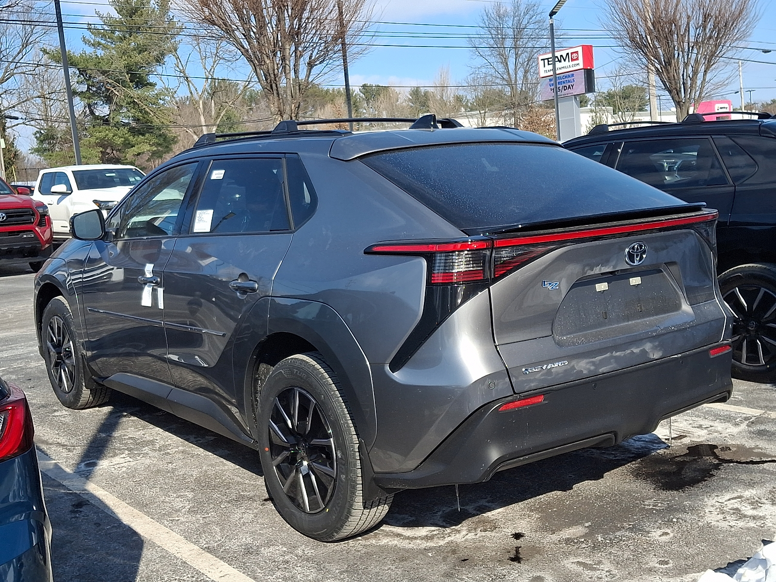 Includes ToyotaCare-2 Years of Complimentary Maintenance & Roadside Assistance. Free Yearly PA State Inspection plus our TeamMate Rewards program gives you 20% back in the form of reward points for every dollar spent in our service department. Each point is worth $1 and may be used towards future vehicle service, future vehicle purchases, accessories, and tires. We want you to be Part of the Team! 50 State Emissions - Includes Emissions: ZEV emissions,Emissions tiers: Tier 3 Bin 0 emissions, All Weather Floor Liners/All Weather Cargo - Includes Floor mats: Rubber front and rear floor mats,Cargo mats: Vinyl/rubber cargo mat, Body Side Moldings, Color Keyed Overfenders - Includes Wheel well trim: Body-colored wheel well trim,Bumper rub strip front: Body-colored front bumper rub strip, Cross Bars - Includes Roof rack: Full roof rack,Roof rails, Door Edge Guards, Mudguard - Includes Front splash guards,Rear splash guards, Panoramic Fixed Glass Roof with Power Shade, Rear Bumper Protector 2026 Toyota bZ Heavy Metal XLE Electric 338hp 1-Speed Direct-Drive Automatic AWD 1-Speed Direct-Drive Automatic, 12V power outlets: 1 12V power outlet, 3-point seatbelt: Rear seat center 3-point seatbelt, 4WD type: Full-time AWD, 50 STATE EMISSIONS - INCLUDES EMISSIONS: ZEV EMISSIONS,EMISSIONS TIERS: TIER 3 BIN 0 EMISSIONS, ABS Brakes: 4-wheel antilock (ABS) brakes, ABS Brakes: Four channel ABS brakes, Accessory power: Retained accessory power, Adaptive cruise control: Full-Speed Range Dynamic Radar Cruise Control (DRCC), Air conditioning: Yes, ALL WEATHER FLOOR LINERS/ALL WEATHER CARGO - INCLUDES FLOOR MATS: RUBBER FRONT AND REAR FLOOR MATS,CARGO MATS: VINYL/RUBBER CARGO MAT, All-in-one key: All-in-one remote fob and ignition key, Ambient lighting: Selectable color ambient lighting, Antenna: Integrated roof audio antenna, Armrests front center: Front seat center armrest, Armrests rear storage: Rear seat center armrest storage, Armrests rear: Rear seat center armrest, Auto door locks: Auto-locking doors, Auto headlights: Auto on/off headlight control, Auto high-beam headlights: Automatic High Beams (AHB) auto high-beam headlights, Auto levelling headlights: Auto-leveling headlights, Automatic brake hold, Automatic curve slowdown cruise control, Autonomous cruise control: Lane Tracing Assist (LTA) hands-on cruise control, AWD, Basic warranty: 36 month/36,000 miles, Battery charge warning, Battery run down protection, Battery type: Lead acid battery, Beverage holders rear: Rear beverage holders, Beverage holders: Front beverage holders, Blind spot: Blind Spot Monitor (BSM), Body panels: Galvanized steel/aluminum body panels with side impact beams, BODY SIDE MOLDINGS, Bodyside cladding: Black bodyside cladding, Brake assist system: Pre-Collision System w/Brake Assist predictive brake assist system, Brake type: 4-wheel disc brakes, Built-in virtual assistant: Intelligent Assistant built-in virtual assistant, Bumper rub strip rear: Black rear bumper rub strip, Bumpers front: Body-colored front bumper, Bumpers rear: Body-colored rear bumper, Cabin air filter, Cargo access: Proximity cargo area access release, Cargo cover: Roll-up cargo cover, Cargo floor type: Carpet cargo area floor, Cargo light: Cargo area light, Cargo tie downs: Cargo area tie downs, Charge port door activation: Manual charge port door activation, Child door locks: Manual rear child safety door locks, Climate control: Automatic climate control, Clock: Digital clock, COLOR KEYED OVERFENDERS - INCLUDES WHEEL WELL TRIM: BODY-COLORED WHEEL WELL TRIM,BUMPER RUB STRIP FRONT: BODY-COLORED FRONT BUMPER RUB STRIP, Concealed cargo storage: Cargo area concealed storage, Console insert material: Piano black console insert, Corrosion perforation warranty: 60 month/unlimited, CROSS BARS - INCLUDES ROOF RACK: FULL ROOF RACK,ROOF RAILS, Cruise control: Cruise control with steering wheel mounted controls, Day/Night rearview mirror, DC fast charge connector type: NACS (J3400) DC fast charge connector, Delay off headlights: Delay-off headlights, Distance alert: Following distance alert, Door ajar warning: Rear cargo area ajar warning, Door bins front: Driver and passenger door bins, Door bins rear: Rear door bins, DOOR EDGE GUARDS, Door handle material: Body-colored door handles, Door locks: Power door locks with 2 stage unlocking, Door mirror style: Black door mirrors, Door mirror type: Standard style side mirrors, Door mirrors: Power door mirrors, Door panel insert: Piano black door panel insert, Door trim insert: Leatherette door trim insert, Drive type: All-wheel drive, Driver attention monitor: Driver attention alert with active monitoring, Driver foot rest, Driver information center, Driver lumbar: Driver seat with 2-way power lumbar, Driver seat direction: Driver seat with 8-way directional controls, Driver selectable regen levels: Driver selectable regen levels with steering wheel controls, Driver selectable steering effort, Drivetrain selectable: Driver selectable drivetrain mode, Dual-zone front climate control, Eco Feedback: ECO feedback display gauge, Electric 338hp, Electric power regeneration gauge: Electric power/regeneration gauge, Electric powertrain: BEV (battery electric vehicle), Electronic parking brake, Electronic stability control: Vehicle Stability Control (VSC) electronic stability control system, Emergency SOS Capable: Safety Connect (10-year trial) vehicle integrated emergency SOS system, Engine Location: Front and rear mounted engine, Engine Mounting direction: Transverse mounted engine, Engine Short: Electric, Engine: Electric, Evasion assist system, Exit warning: Safe Exit Alert (SEA) external exit warning system, External acoustic pedestrian alert: Vehicle Proximity Notification System (VPNS) external acoustic pedestrian alert, External memory: External memory control, First-row windows: Power first-row windows, Floor console storage: Covered floor console storage, Floor console: Full floor console, Floor coverage: Full floor covera