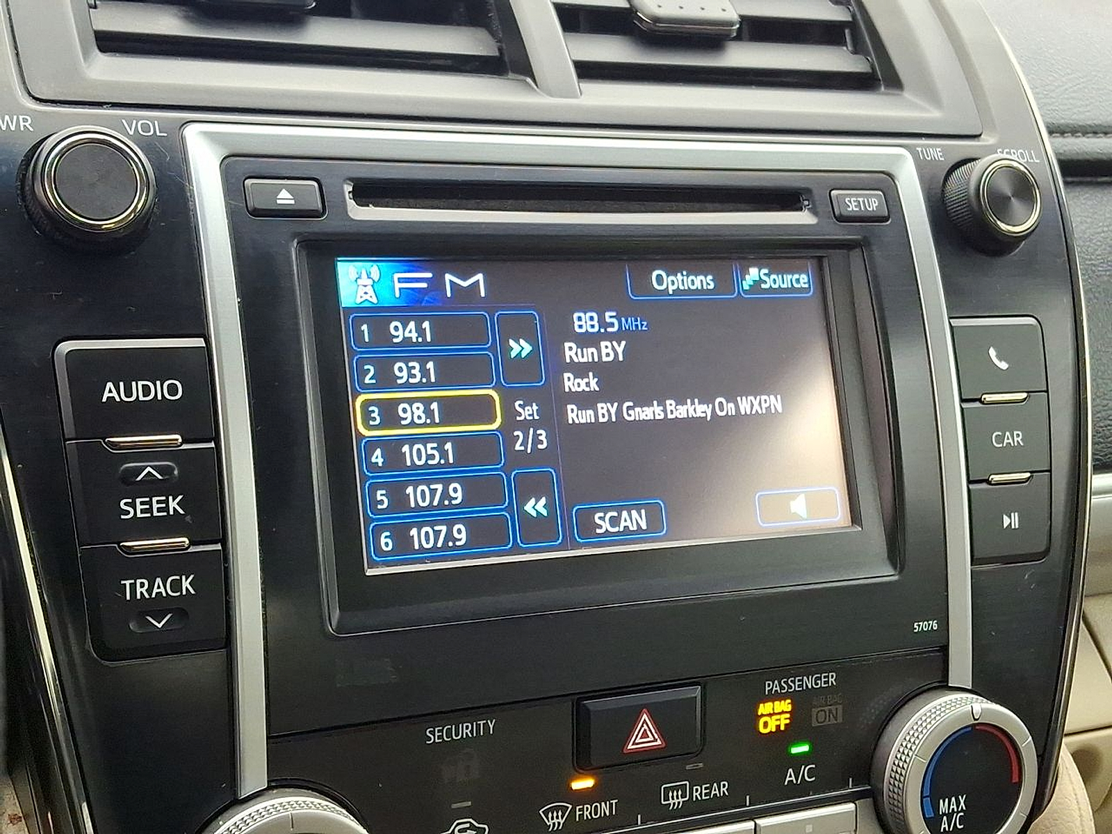 - CD player located in the dashboard/instrument panel