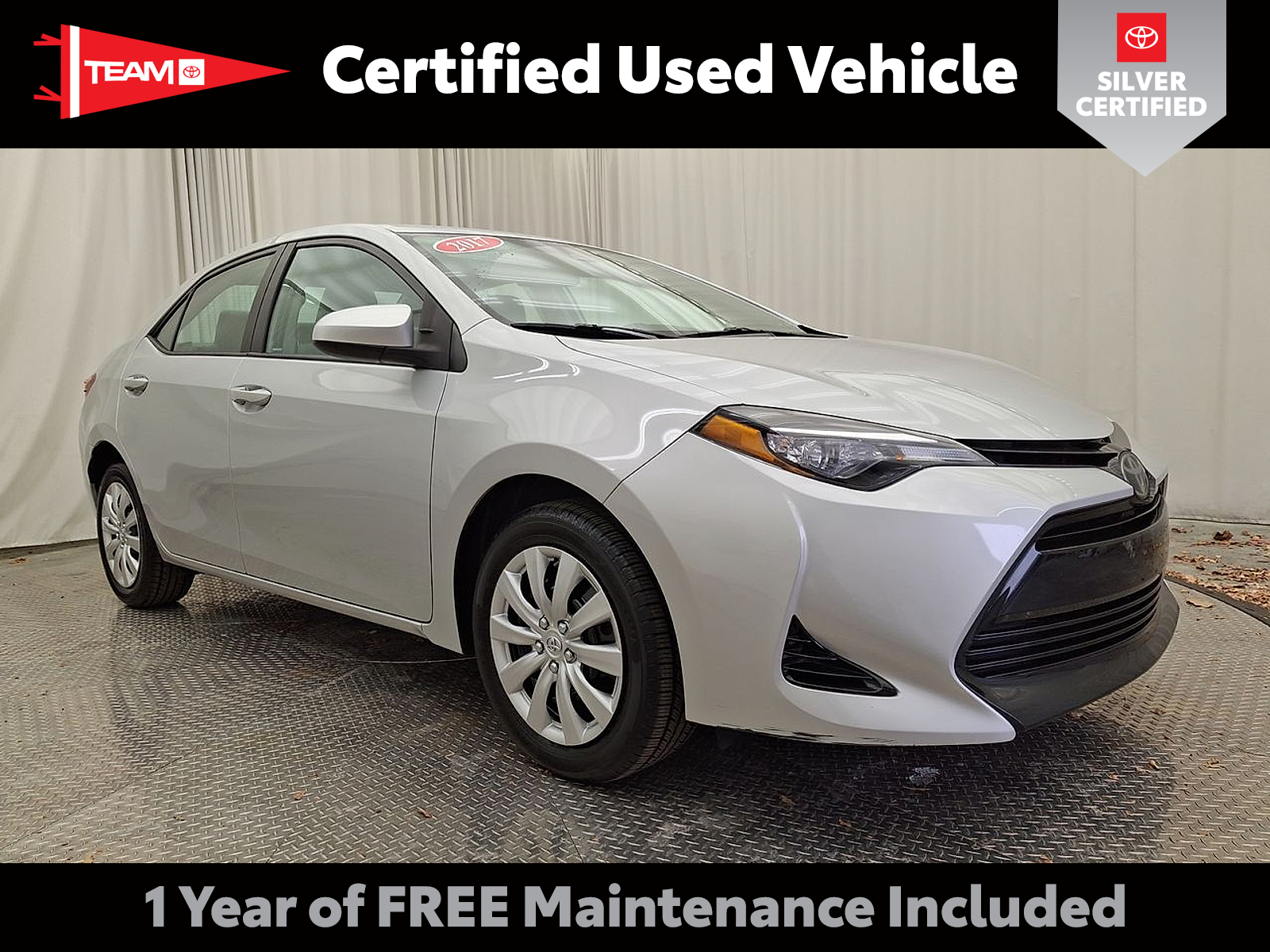 Includes One Year Complimentary Maintenance & Roadside Assistance. Free Yearly PA State Inspection plus our TeamMate Rewards program gives you 20% back in the form of reward points for every dollar spent in our service department. Each point is worth $1 and may be used towards future vehicle service, future vehicle purchases, accessories, and tires. We want you to be Part of the Team. 2017 Toyota Corolla LE Classic Silver Metallic Ash 50 State Emissions, All-Weather Floor Liners and Cargo Tray Package 1.8L I4 132hp 128ft. lbs. 28/36 City/Highway MPG 2017 Automotive Science Group Best Mid-Size Cars, 2017 J.D. Power and Associates Initial Quality Study (IQS): Highest Ranked, 2017 Kelley Blue Book 5-Year Cost to Own: Best Compact Car, 2017 Kelley Blue Book Best Resale Value: Brand, 2017 US News Best Affordable Small Cars, 2017 Vincentric Best CPO Value in America: Passenger Car Brand, 2017 Vincentric Best Value in America: Passenger Car Brand https://www.teamtoyotaglenmills.com/ Includes: Silver Certified vehicles have passed a comprehensive 135-point inspection conducted by factory-trained technicians to ensure they meet the highest performance and safety standards. Each Silver Certified vehicle includes a 12-month/12,000-mile limited powertrain warranty, and one year of roadside assistance. A complimentary CARFAX Vehicle History Report is also provided.