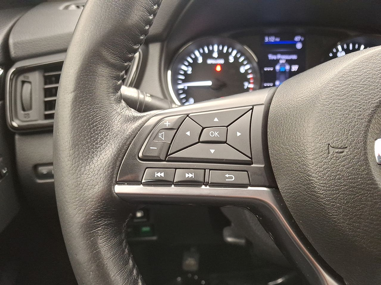 - Leather and metal-look steering wheel