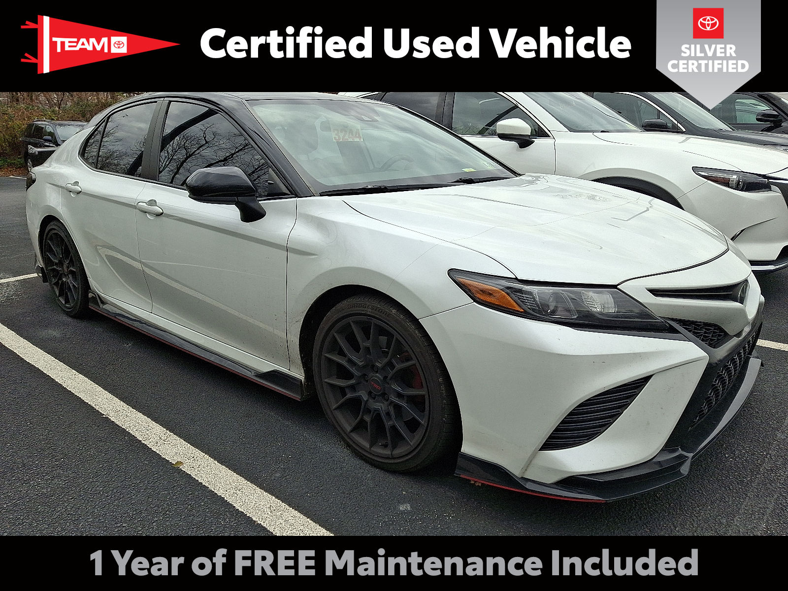 Includes One Year Complimentary Maintenance & Roadside Assistance. Free Yearly PA State Inspection plus our TeamMate Rewards program gives you 20% back in the form of reward points for every dollar spent in our service department. Each point is worth $1 and may be used towards future vehicle service, future vehicle purchases, accessories, and tires. We want you to be Part of the Team. 2020 Toyota Camry TRD Wind Chill Pearl w/Midnight Black Metallic Roof Black/Red 3.5L V6 DOHC 24-Valve -inc: VVT-iW intake and VVT-i exhaust 22/31 City/Highway MPG 2020 Car And Driver Editors Choice Awards: Sedans, 2020 Consumer Guide Automotive Best Buy: Midsize Cars, 2020 Insurance Institute for Highway Safety Top Safety Pick+ - Midsize Cars, 2020 Intellichoice Overall Value - Popular Brand, 2020 US News Best Cars for Families, 2020 US News Best Cars for the Money https://www.teamtoyotaglenmills.com/ Includes: Silver Certified vehicles have passed a comprehensive 135-point inspection conducted by factory-trained technicians to ensure they meet the highest performance and safety standards. Each Silver Certified vehicle includes a 12-month/12,000-mile limited powertrain warranty, and one year of roadside assistance. A complimentary CARFAX Vehicle History Report is also provided.