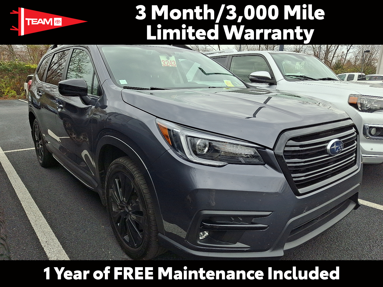 Includes One Year Complimentary Maintenance & Roadside Assistance. Free Yearly PA State Inspection plus our TeamMate Rewards program gives you 20% back in the form of reward points for every dollar spent in our service department. Each point is worth $1 and may be used towards future vehicle service, future vehicle purchases, accessories, and tires. We want you to be Part of the Team. 2022 Subaru Ascent Onyx Edition Magnetite Gray Metallic Gray Moonroof, Navigation System, and Cargo Cover, Power Panoramic Moonroof / Sunroof, Touch Screen Display Radio 2.4L Turbo H4 260hp 277ft. lbs. 20/26 City/Highway MPG 2022 Insurance Institute for Highway Safety Top Safety Pick+, 2022 Intellichoice Lowest Ownership Costs - Popular Brand, 2022 Kelley Blue Book 5-Year Cost to Own: Best Mid-Size SUV/Crossover, 2022 Kelley Blue Book Brand Image Awards: Best Performance Brand, 2022 Kelley Blue Book Brand Image Awards: Most Trusted Brand, 2022 Vincentric Best CPO Value in America: SUV Brand https://www.teamtoyotaglenmills.com/
