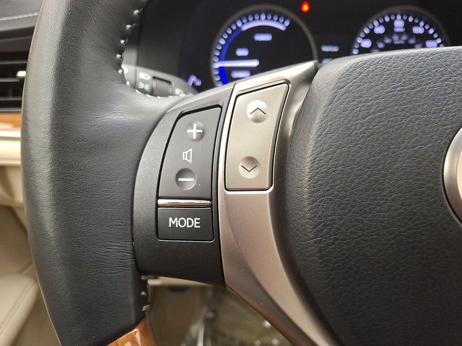- Leather and metal-look steering wheel