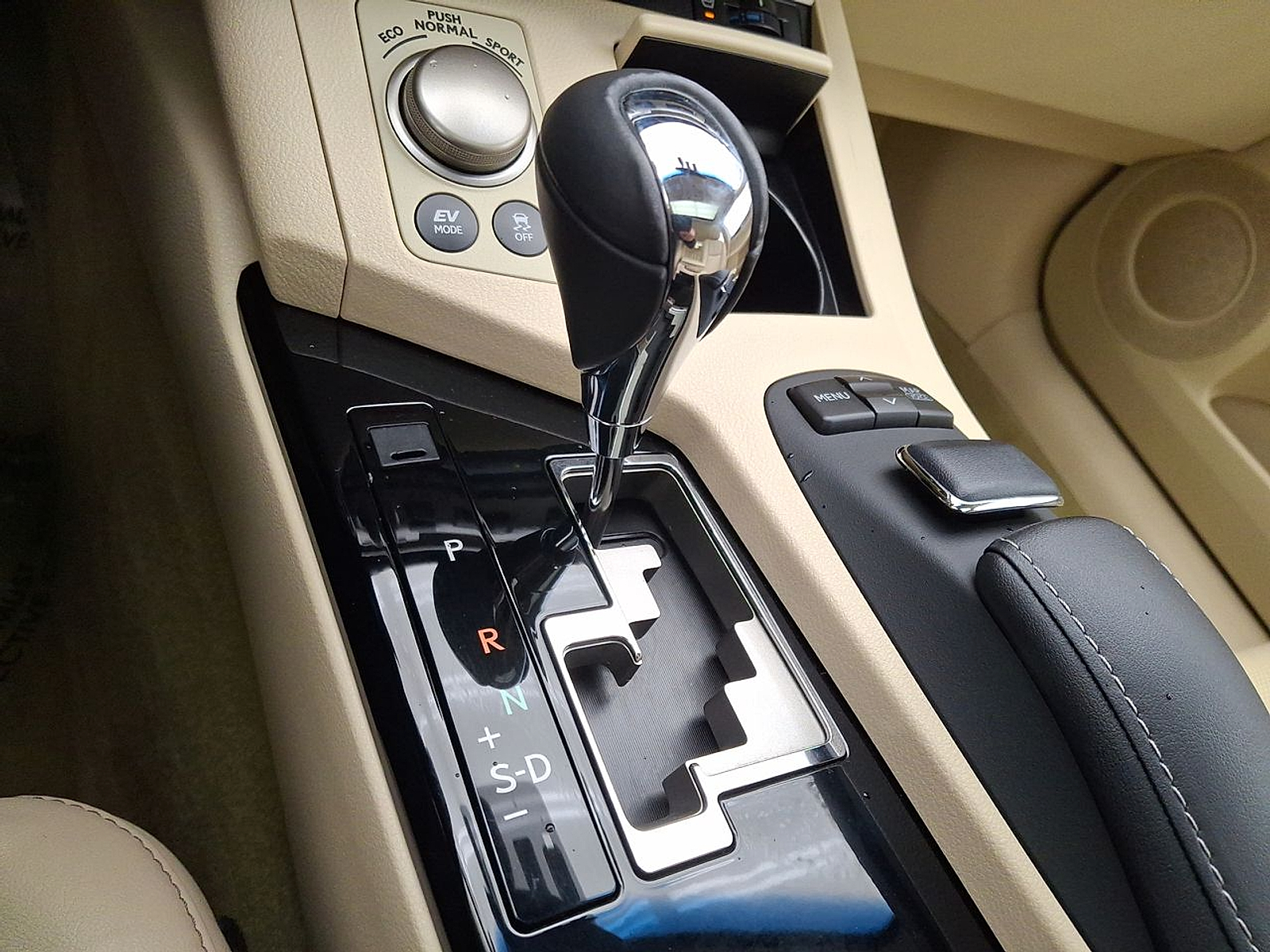 - Leather and chrome gear shifter material